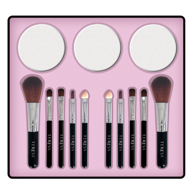 10支毛刷,3片粉扑